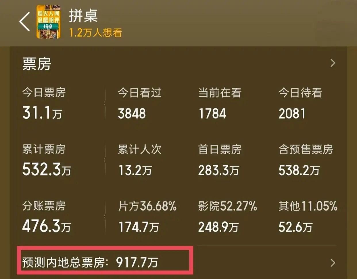 在上映不到一周的情况下,硬是搞到了503.3万的票房。