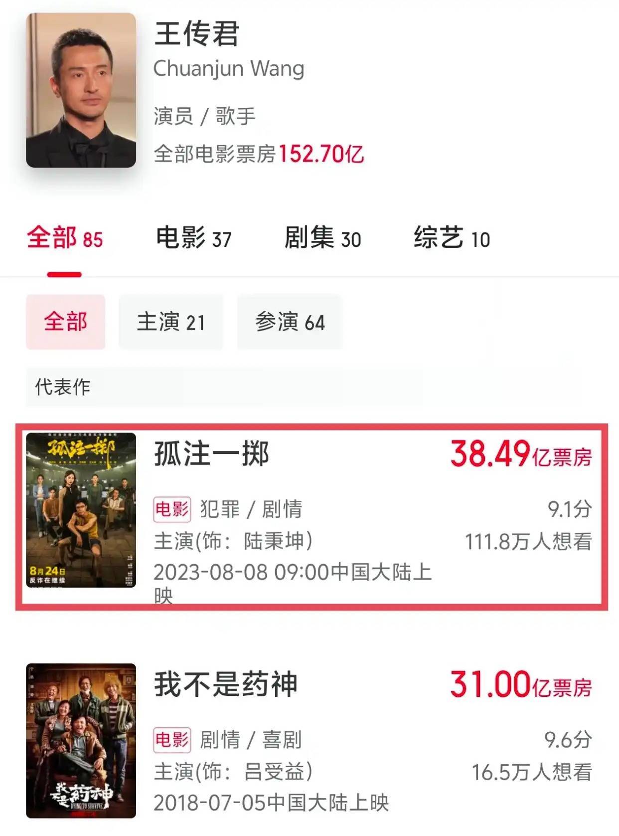 申奥导演的《孤注一掷》能狂揽38.49亿票房,有一大半以上的功劳要算在王传君的身上。